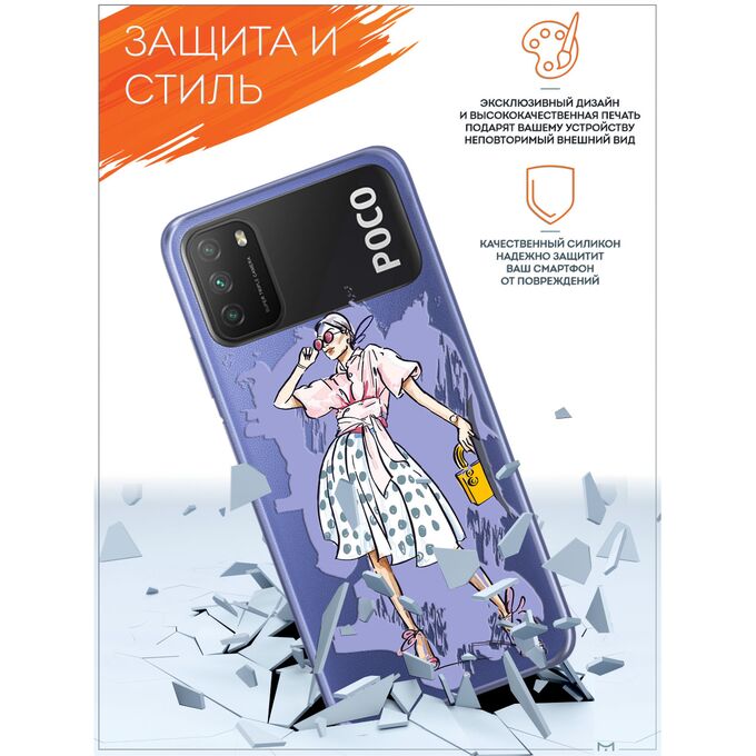 Силиконовый чехол Mcover для Poco M3 (Поко М3), Девушка в платье