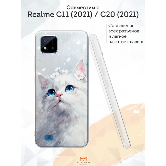 Силиконовый чехол Mcover для realme C11 (2021)/realme C20 (Реалми С11 (2021)), Белый кот