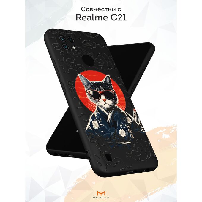 Силиконовый чехол Mcover для realme C21 (Реалми С21), Кот в кимоно