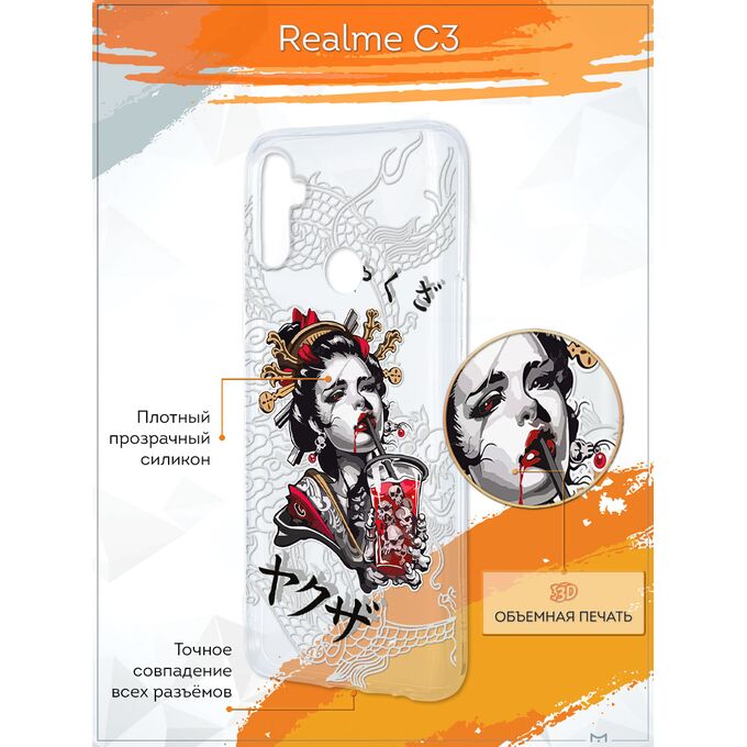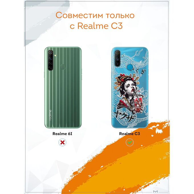 Чехол для смартфона Realme C3 - неотъемлемый аксессуар каждого современного человека. Премиальные износостойкие краски и лаки, качественные материалы изделия, японское оборудование и контроль качества производства - это то, что позволяет нам выгодно выделяться среди конкурентов и производить не только красивые, но тактильно приятные чехлы для Реалми С3, которые долгое время не теряют первоначального вида.