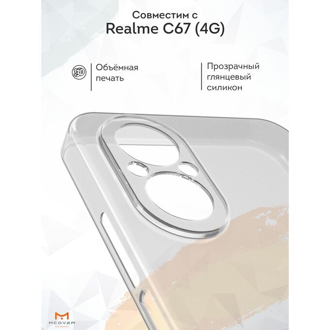 Силиконовый чехол для смартфона Realme C67 (4G) - это стильное дополнение и надежная защита для вашего смартфона. Изготовлен из прочного силикона, который устойчив к потертостям, царапинам, и другим повреждениям, что даёт вам возможность на долгий срок службы устройства. Дизайн чехла придется по вкусу самым требовательным покупателям. Наша команда дизайнеров создает уникальные принты и рисунки, которые не оставят равнодушными окружающих. Благодаря износостойким краскам и лакам, он всегда будет выглядеть свежим и новым даже после длительной эксплуатации. Особенностью чехла от бренда Mcover является его идеальное прилегание к смартфону, повторяющее его контуры. Это обеспечивает не только эстетичный вид, но и полный доступ к функциям и портам вашего телефона.