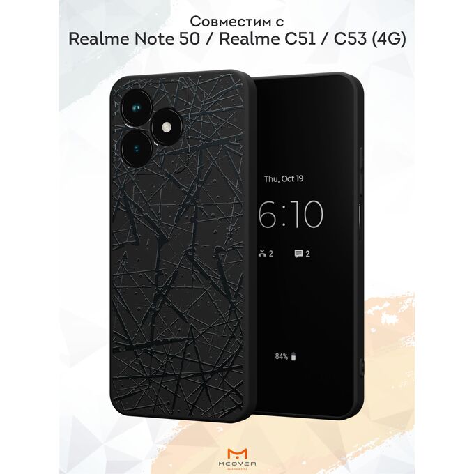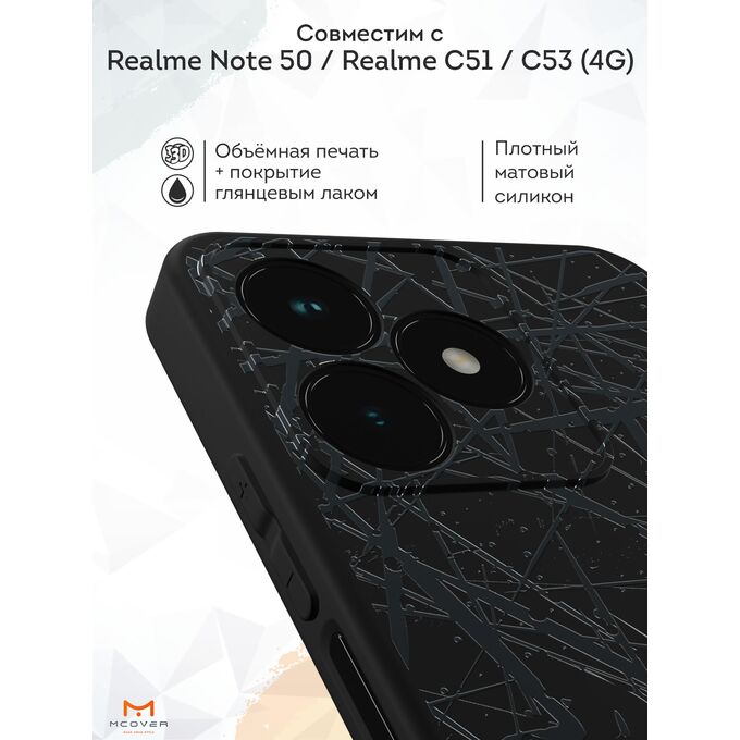 Силиконовый чехол Mcover для Realme Note 50 / Realme C51 / С53 (4G) (Риалми Ноте 50, Риалми Ц51 и Ц53 4Джи), Чёрный узор