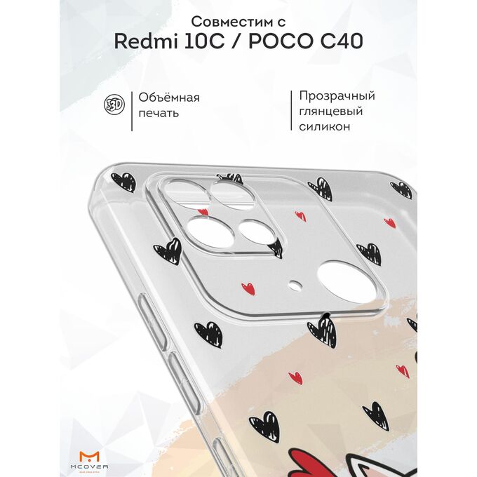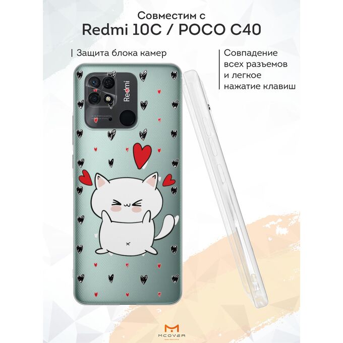 Силиконовый чехол Mcover для Redmi 10C/Poco C40 (Редми 10C), Котик в сердцах