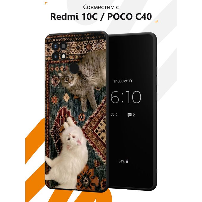 Силиконовый чехол Mcover для Redmi 10C/Poco C40 (Редми 10C), Коты на ковре