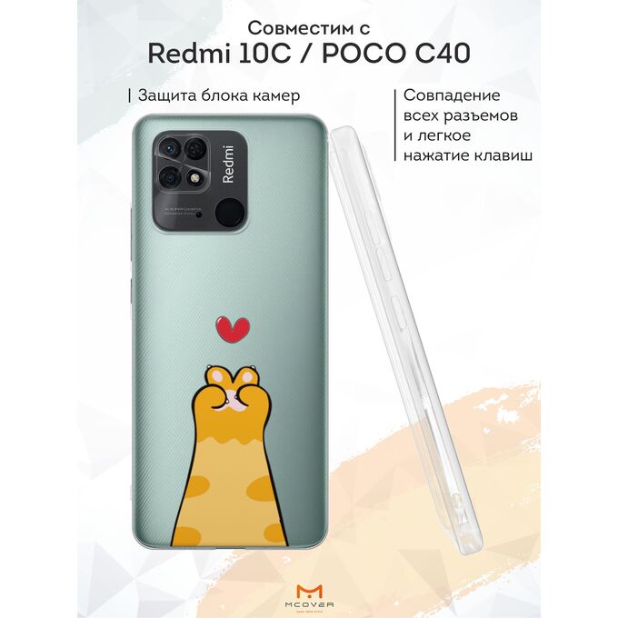 Силиконовый чехол Mcover для Redmi 10C/Poco C40 (Редми 10C), Рыжая лапка
