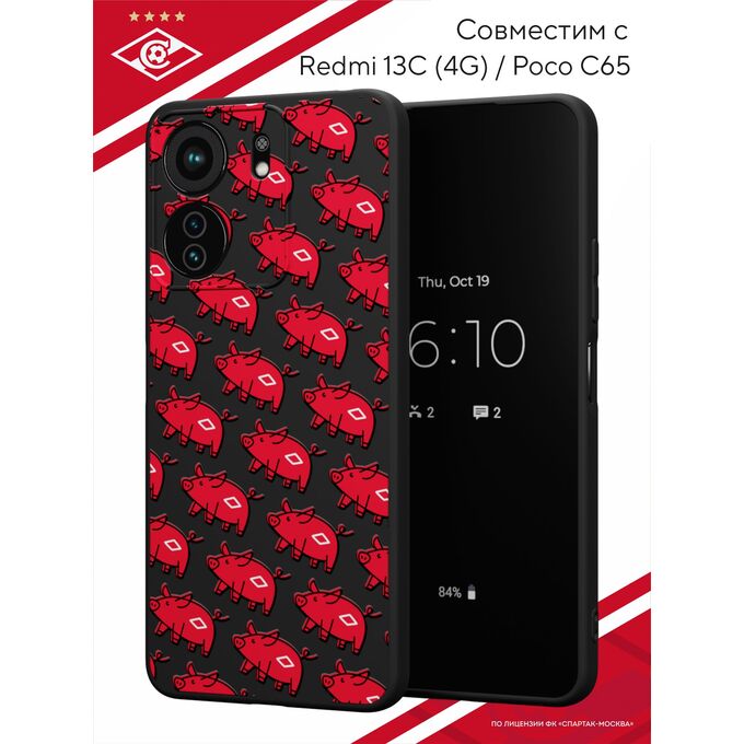 Силиконовый чехол DesignOnCase для Redmi 13C (Редми 13Ц), Спартак свинки