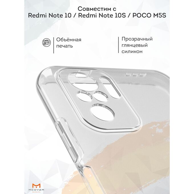 Чехол для смартфона Redmi Note 10/Redmi Note 10S/POCO M5S - неотъемлемый аксессуар каждого современного человека. Премиальные износостойкие краски и лаки, качественные материалы изделия, японское оборудование и контроль качества производства - это то, что позволяет нам выгодно выделяться среди конкурентов и производить не только красивые, но тактильно приятные чехлы для Сяоми Редми Нот 10 Нот 10с Поко М5С, которые долгое время не теряют первоначального вида.