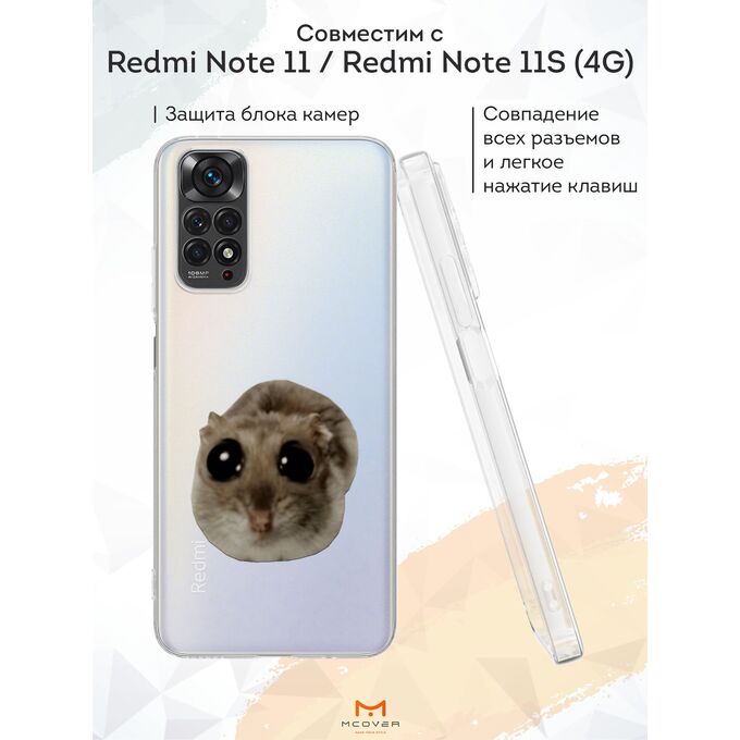 Силиконовый чехол Mcover для Redmi Note 11 (Редми Нот 11), Грустный хомячок