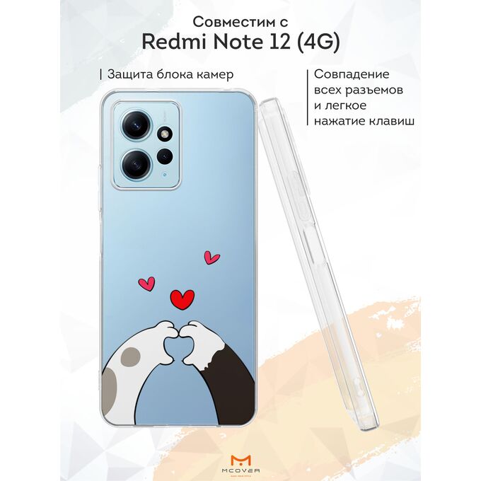Силиконовый чехол Mcover для Redmi Note 12 (4G) (Редми Ноут 12 4Джи), Лапки с сердцем