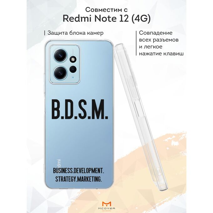Силиконовый чехол Mcover для Redmi Note 12 (4G) (Редми Ноут 12 4Джи), Надпись B.D.S.M.