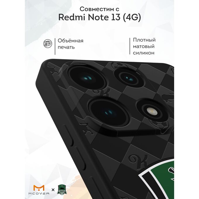 Силиконовый чехол Mcover для Redmi Note 13 (4G) (Редми Нот 13 4Джи), Герб ФК Краснодар на черной клетке