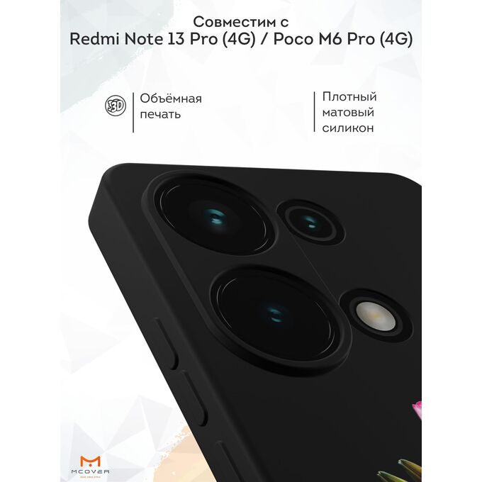 Силиконовый чехол для смартфона Redmi Note 13 Pro (4G) / Poco M6 Pro (4G) - это стильное дополнение и надежная защита для вашего смартфона. Изготовлен из прочного силикона, который устойчив к потертостям, царапинам, и другим повреждениям, что даёт вам возможность на долгий срок службы устройства. Дизайн чехла придется по вкусу самым требовательным покупателям. Наша команда дизайнеров создает уникальные принты и рисунки, которые не оставят равнодушными окружающих. Благодаря износостойким краскам и лакам, он всегда будет выглядеть свежим и новым даже после длительной эксплуатации. Особенностью чехла от бренда Mcover является его идеальное прилегание к смартфону, повторяющее его контуры. Это обеспечивает не только эстетичный вид, но и полный доступ к функциям и портам вашего телефона.