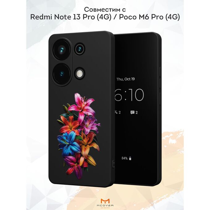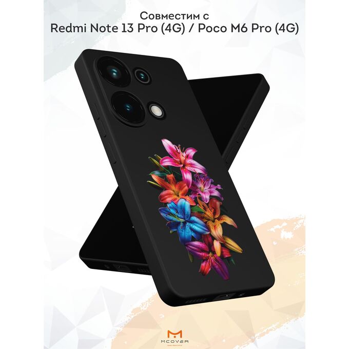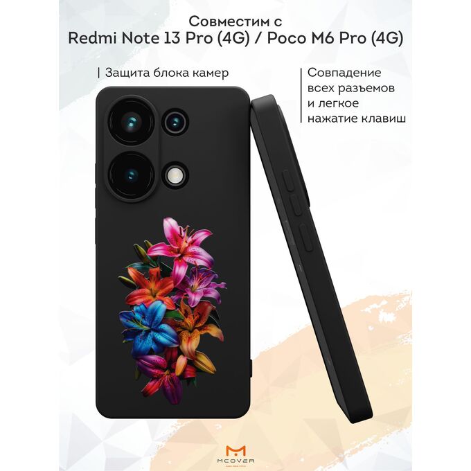 Силиконовый чехол Mcover для Redmi Note 13 Pro (4G) / Poco M6 Pro (4G) (Редми Нот 13 Про 4Джи и Поко М6 Про 4Джи), Лилии