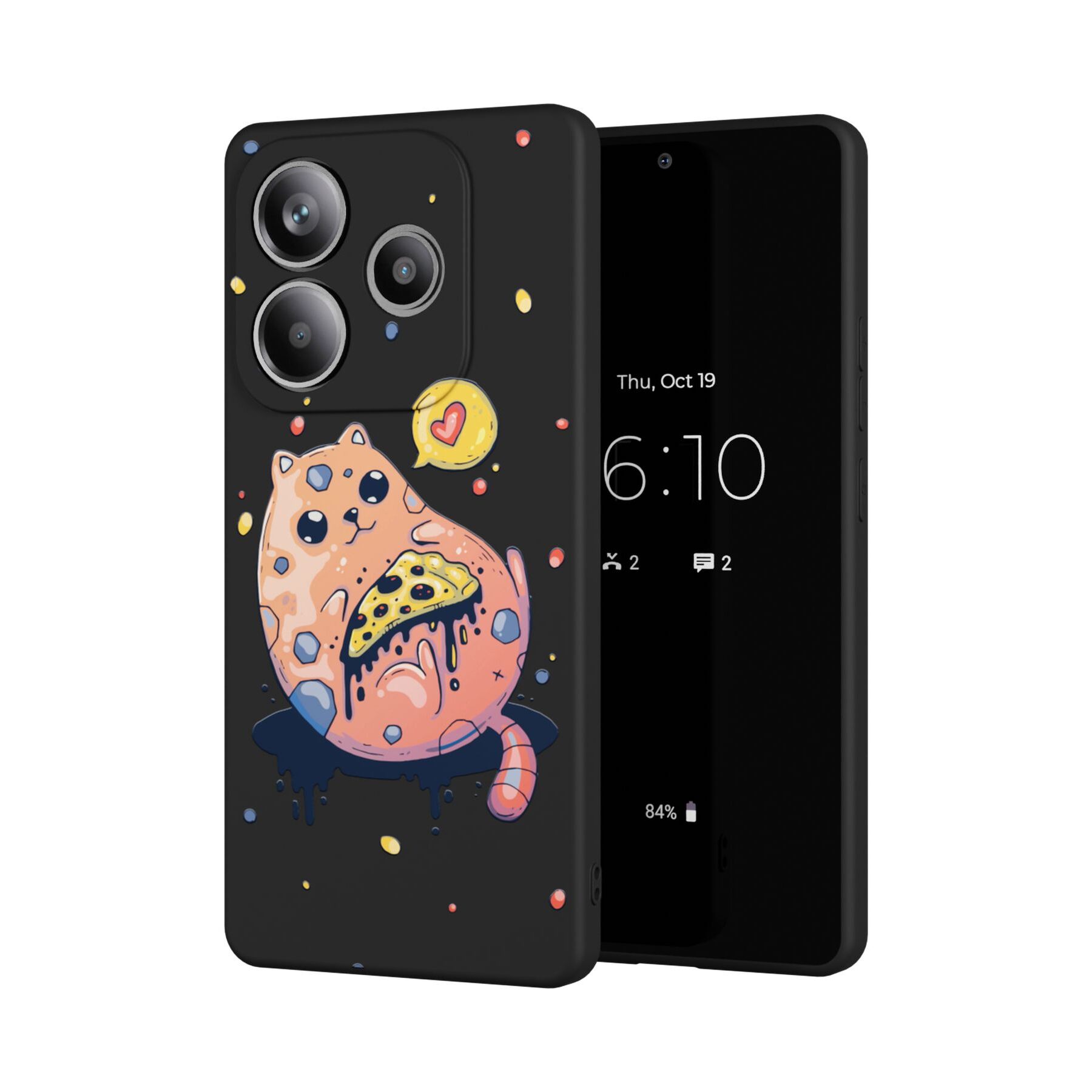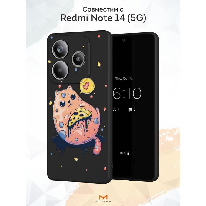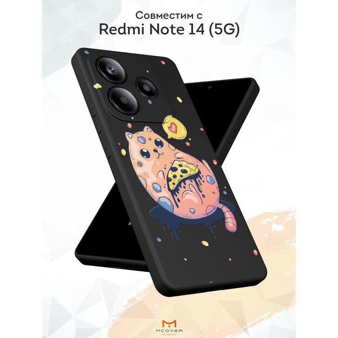 Силиконовый чехол Mcover для Redmi Note 14 (5G) (Редми Нот 14 5Джи), Космо-кот с пиццей