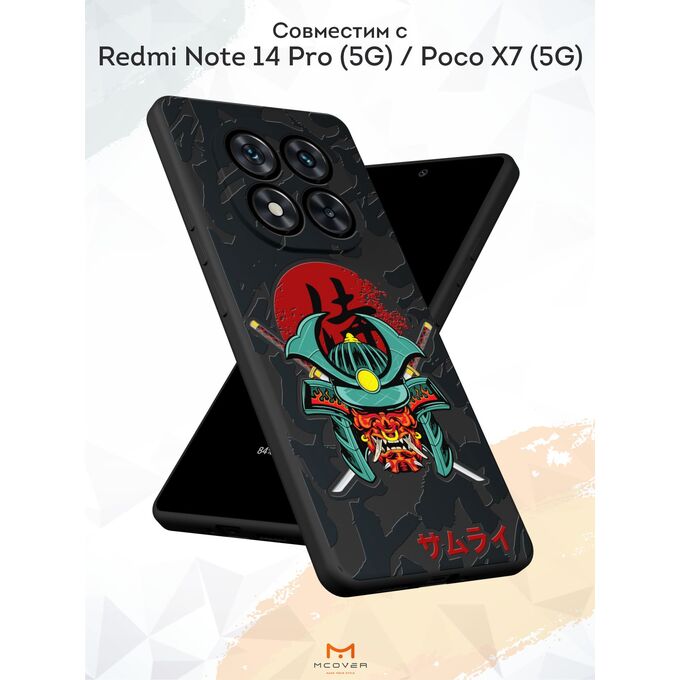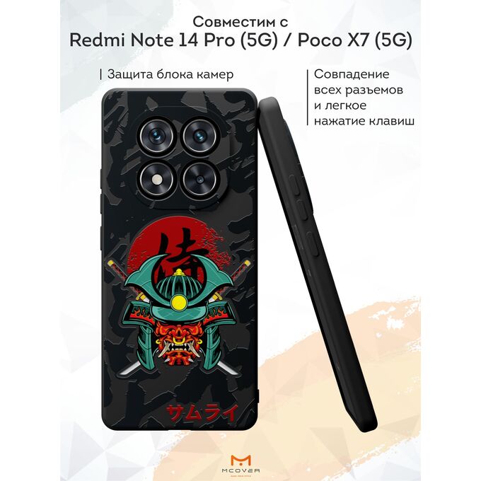 Силиконовый чехол Mcover для Redmi Note 14 Pro (5G) / Poco X7 (5G) (Редми Нот 14 Про 5Джи и Поко Икс7 5Джи), Голова японского воина
