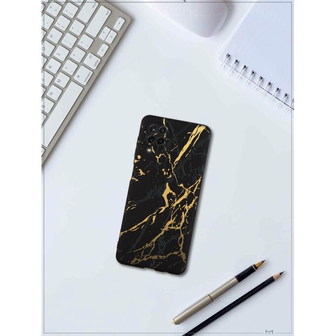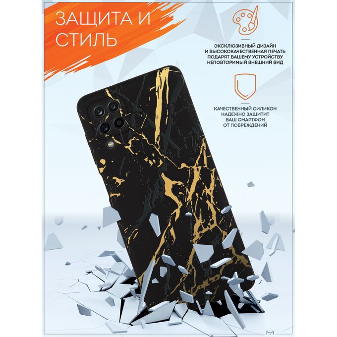 Силиконовый чехол Mcover для Samsung Galaxy A12 / на Самсунг Галакси А12, Золотой мрамор