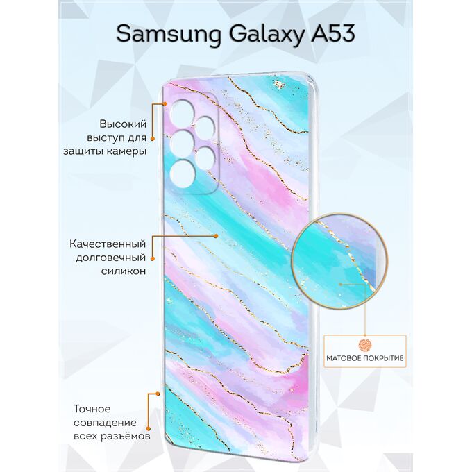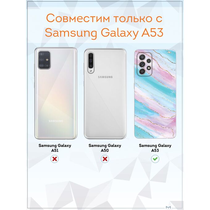 Чехол для смартфона Galaxy A53 5G - неотъемлемый аксессуар каждого современного человека. Премиальные износостойкие краски и лаки, качественные материалы изделия, японское оборудование и контроль качества производства - это то, что позволяет нам выгодно выделяться среди конкурентов и производить не только красивые, но тактильно приятные чехлы для Самсунг Галакси А53, которые долгое время не теряют первоначального вида.