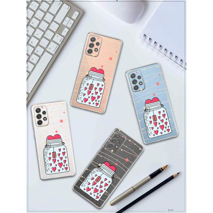 Силиконовый чехол Mcover для Galaxy A53 (Галакси А53), Баночка с сердечками