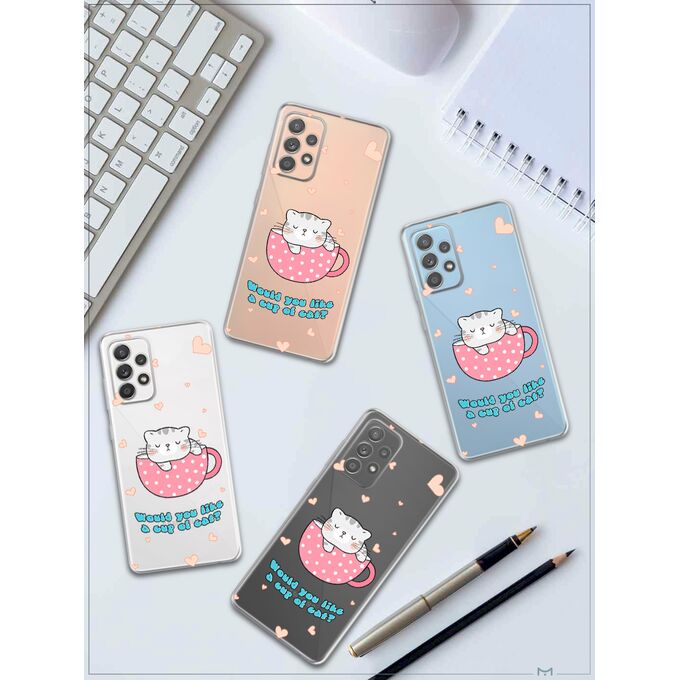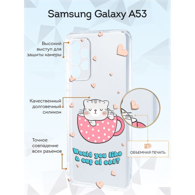 Силиконовый чехол Mcover для Galaxy A53 (Галакси А53), Кот в кружке