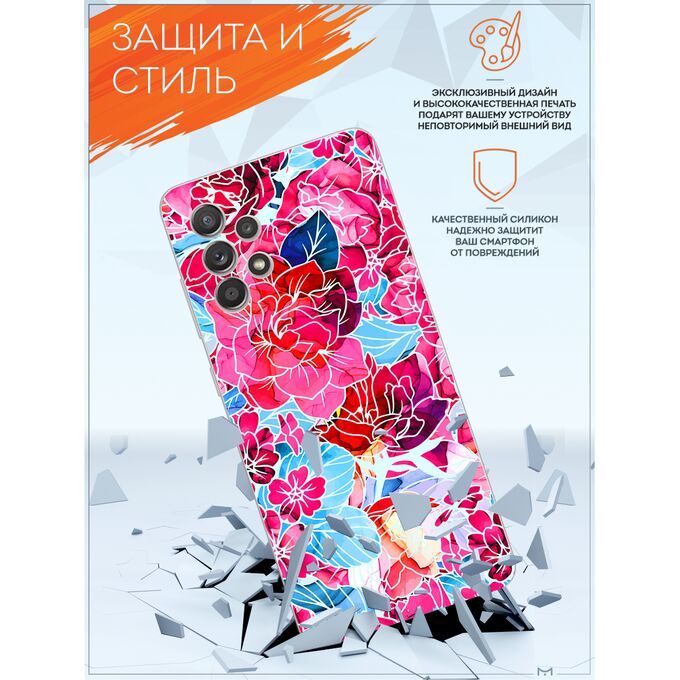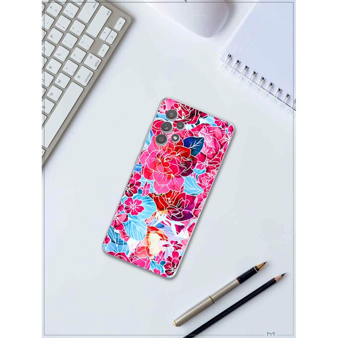 Силиконовый чехол Mcover для Galaxy A53 (Галакси А53), Розовые цветы