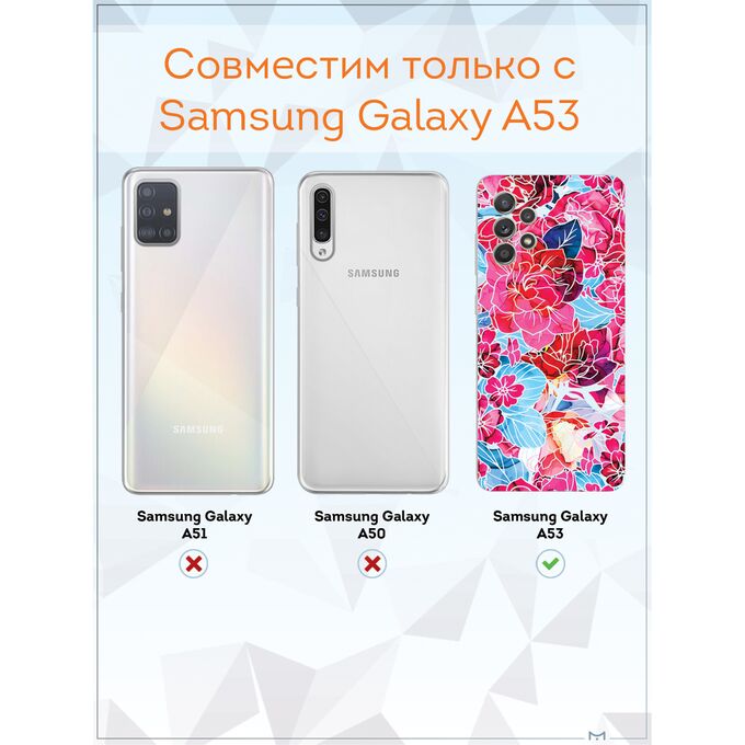 Чехол для смартфона Galaxy A53 5G - неотъемлемый аксессуар каждого современного человека. Премиальные износостойкие краски и лаки, качественные материалы изделия, японское оборудование и контроль качества производства - это то, что позволяет нам выгодно выделяться среди конкурентов и производить не только красивые, но тактильно приятные чехлы для Самсунг Галакси А53, которые долгое время не теряют первоначального вида.