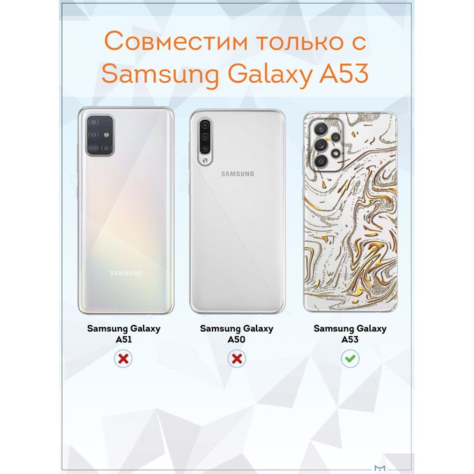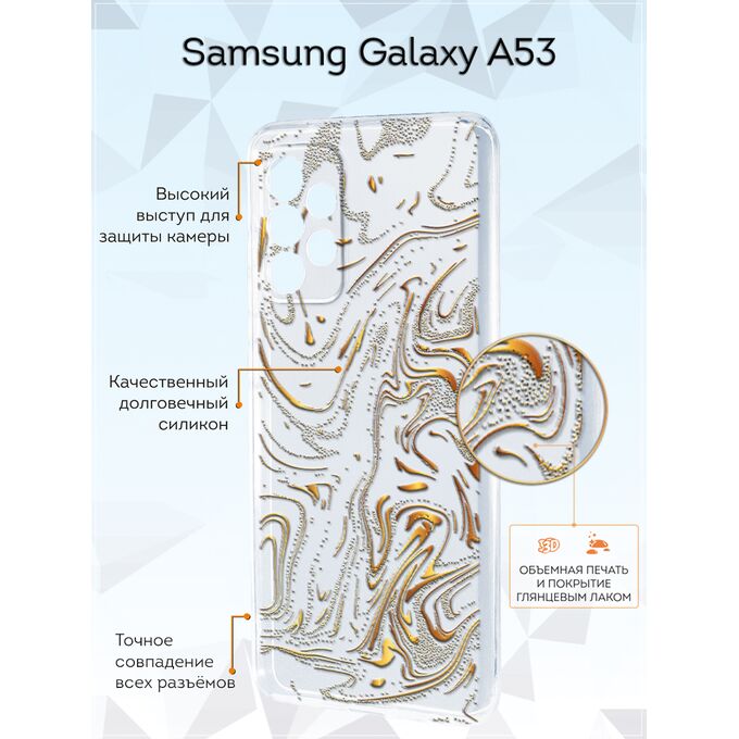 Чехол для смартфона Galaxy A53 5G - неотъемлемый аксессуар каждого современного человека. Премиальные износостойкие краски и лаки, качественные материалы изделия, японское оборудование и контроль качества производства - это то, что позволяет нам выгодно выделяться среди конкурентов и производить не только красивые, но тактильно приятные чехлы для Самсунг Галакси А53, которые долгое время не теряют первоначального вида.