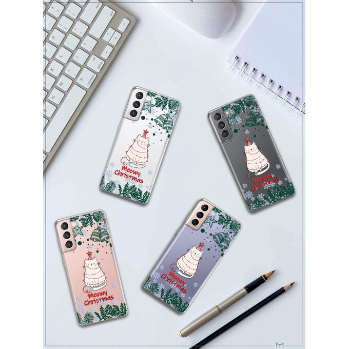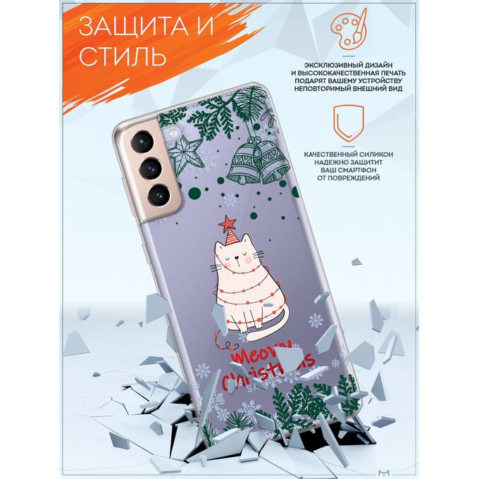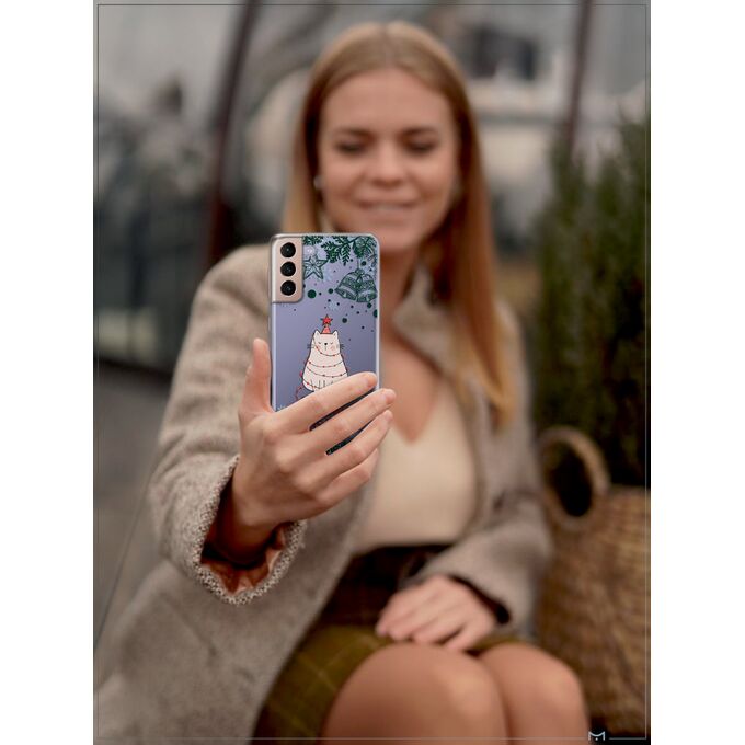 Силиконовый чехол Mcover для Galaxy S21 (Галакси С21), Кот в гирлянде