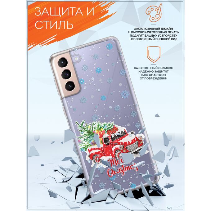 Силиконовый чехол Mcover для Galaxy S21 (Галакси С21), Новогодний грузовик
