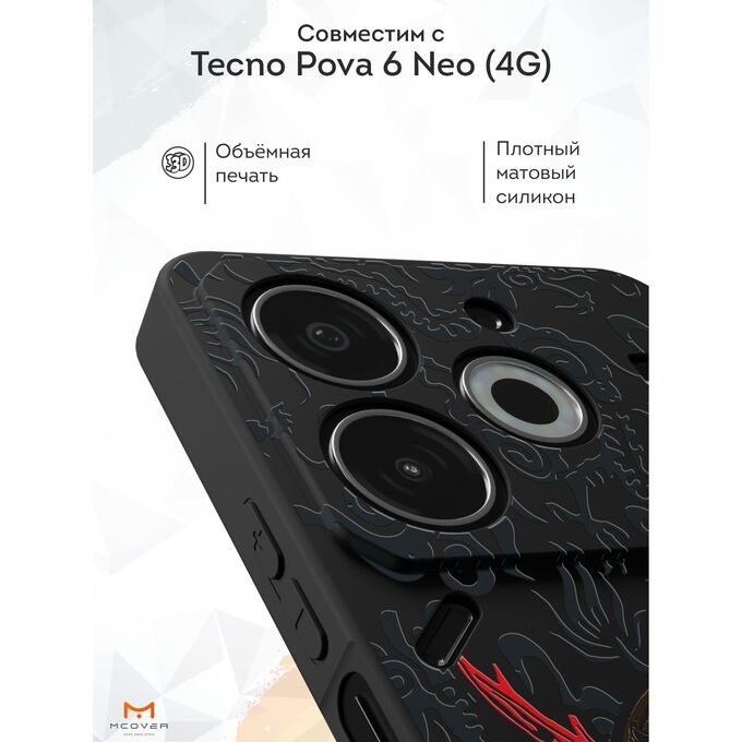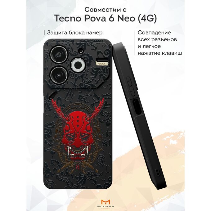 Силиконовый чехол Mcover для Tecno Pova 6 Neo (4G) (Техно Пова 6 Нео 4Джи), Красная маска Они / Японский Демон