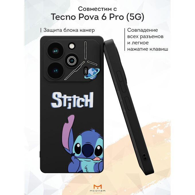 Силиконовый чехол Mcover для Tecno Pova 6 Pro (5G) (Техно Пова 6 Про 5Джи), Стич и планета