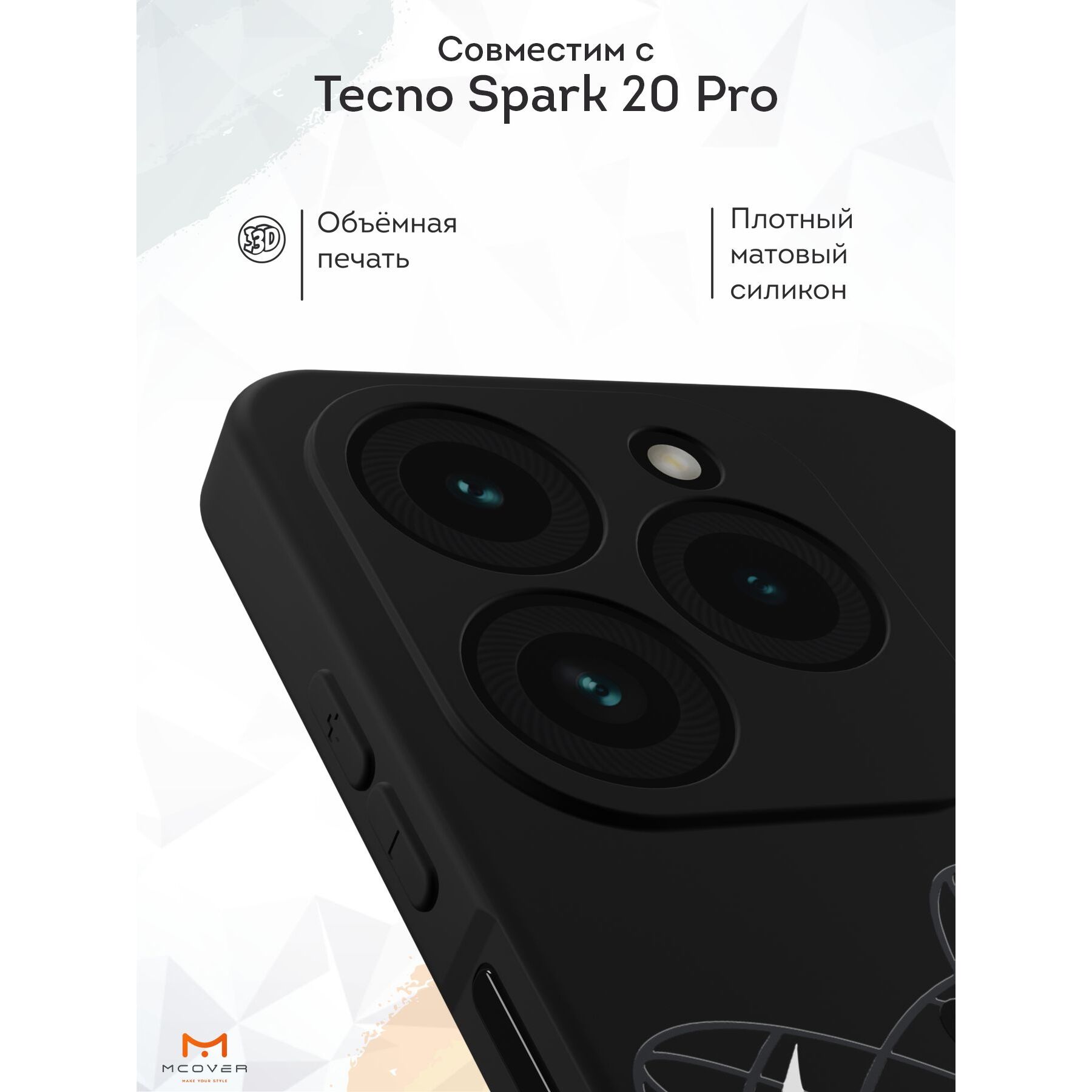 Силиконовый чехол для смартфона Tecno Spark 20 Pro - это стильное дополнение и надежная защита для вашего смартфона. Изготовлен из прочного силикона, который устойчив к потертостям, царапинам, и другим повреждениям, что даёт вам возможность на долгий срок службы устройства. Дизайн чехла придется по вкусу самым требовательным покупателям. Наша команда дизайнеров создает уникальные принты и рисунки, которые не оставят равнодушными окружающих. Благодаря износостойким краскам и лакам, он всегда будет выглядеть свежим и новым даже после длительной эксплуатации. Особенностью чехла от бренда Mcover является его идеальное прилегание к смартфону, повторяющее его контуры. Это обеспечивает не только эстетичный вид, но и полный доступ к функциям и портам вашего телефона.