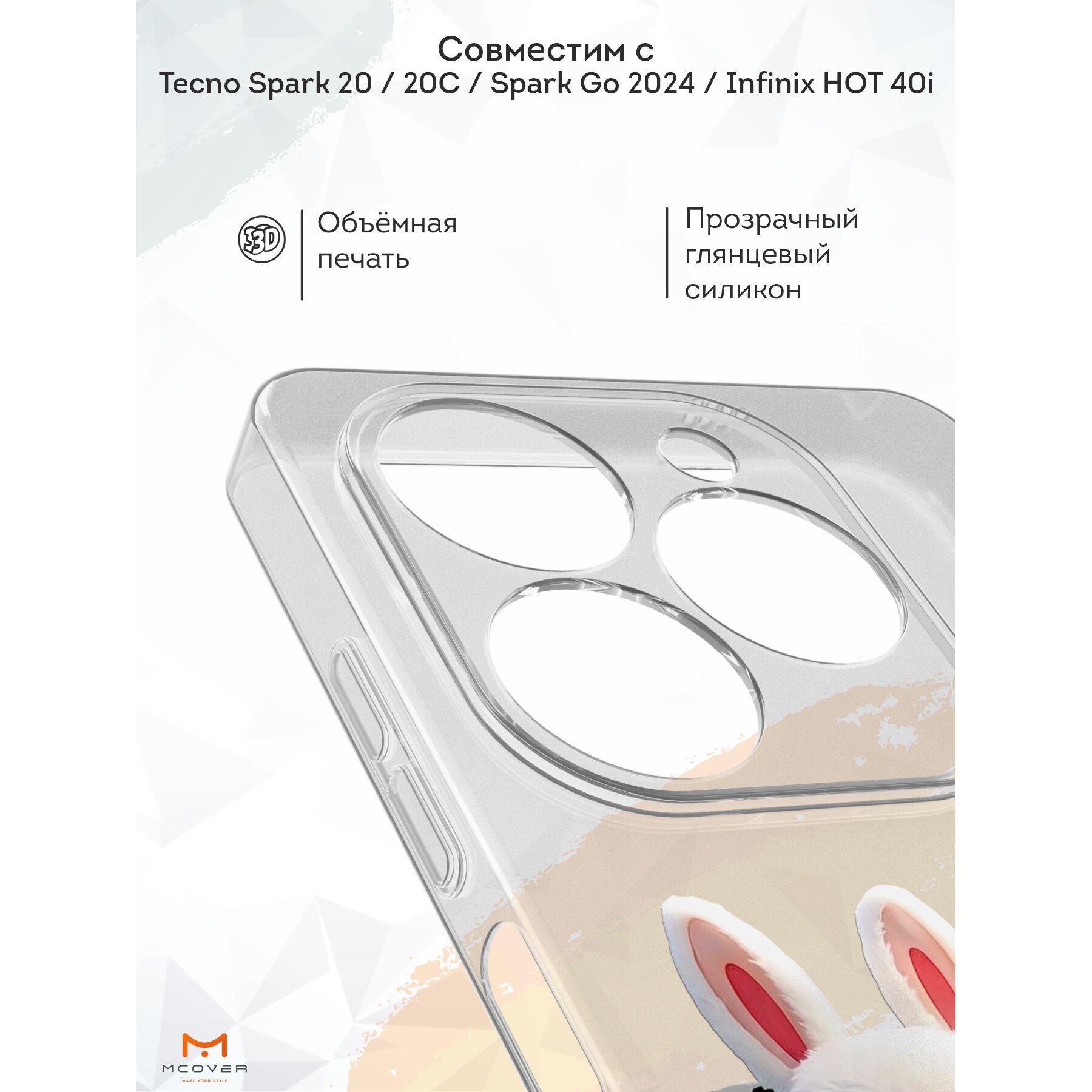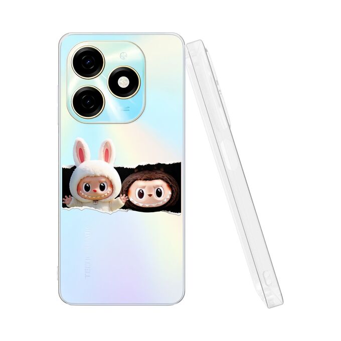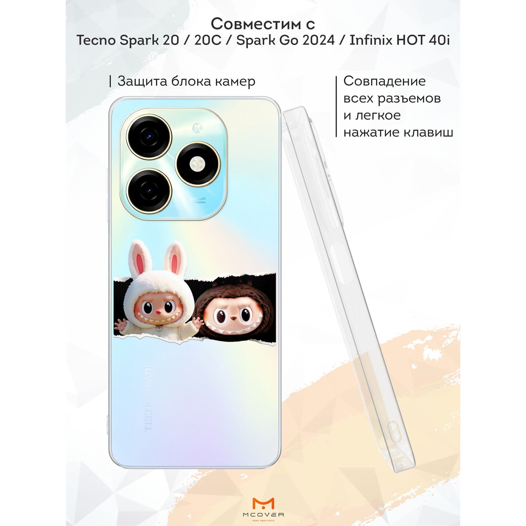 Силиконовый чехол Mcover для Tecno Spark 20 / Spark 20С / Spark Go 2024 (Техно Спарк 20, Спарк 20ц и Спарк Гоу 2024), Белый и коричневый лабубу