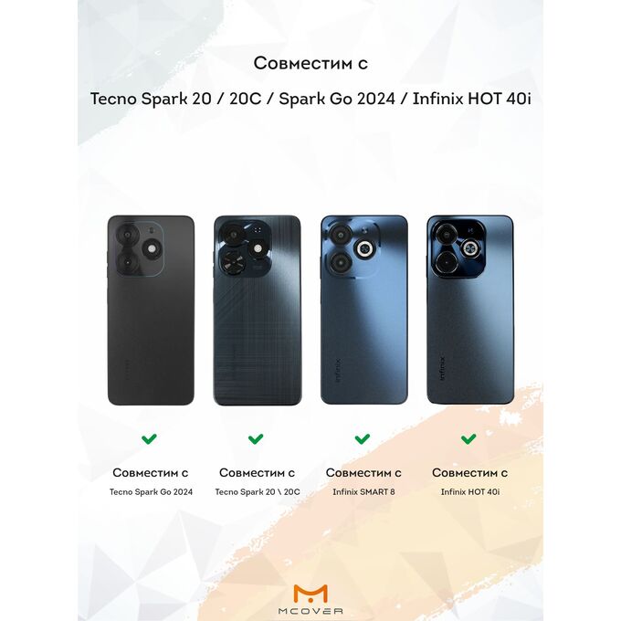 Чехол для смартфона Tecno Spark 20 / Spark 20С / Spark Go 2024 - неотъемлемый аксессуар каждого современного человека. Премиальные износостойкие краски и лаки, качественные материалы изделия, японское оборудование и контроль качества производства - это то, что позволяет нам выгодно выделяться среди конкурентов и производить не только красивые, но тактильно приятные чехлыTecno Spark 20 / Spark 20С / Spark Go 2024, которые долгое время не теряют первоначального вида.