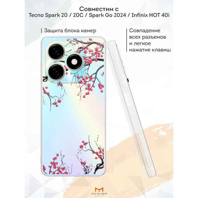 Силиконовый чехол Mcover для Tecno Spark 20 / Spark 20С / Spark Go 2024 (Техно Спарк 20, Спарк 20ц и Спарк Гоу 2024), Сакура цветущая