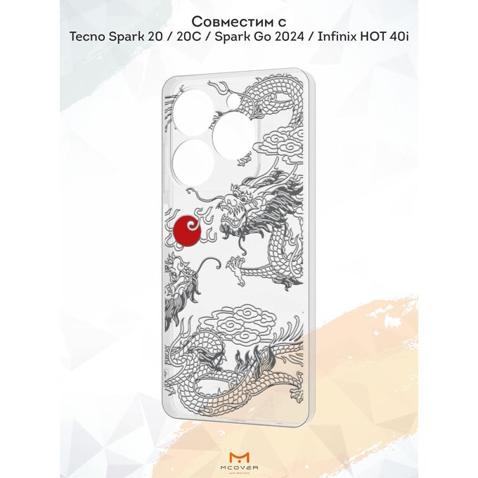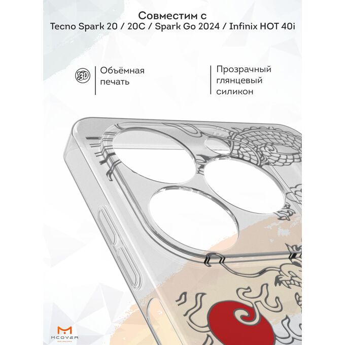 Силиконовый чехол Mcover для Tecno Spark 20 / Spark 20С / Spark Go 2024 (Техно Спарк 20, Спарк 20ц и Спарк Гоу 2024), Японский дракон инь, аниме
