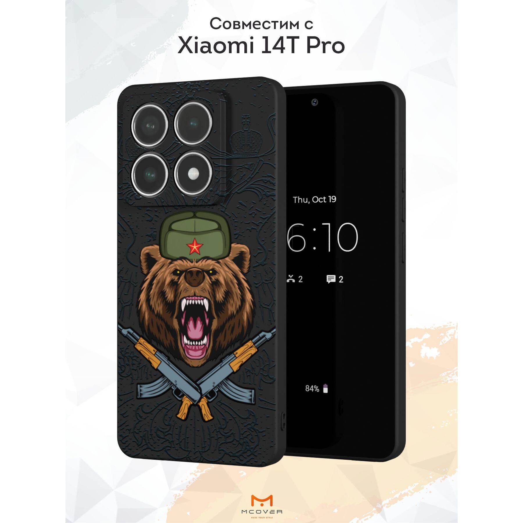 Силиконовый чехол Mcover для Xiaomi 14T Pro (Сяоми 14Т Про), Русский медведь