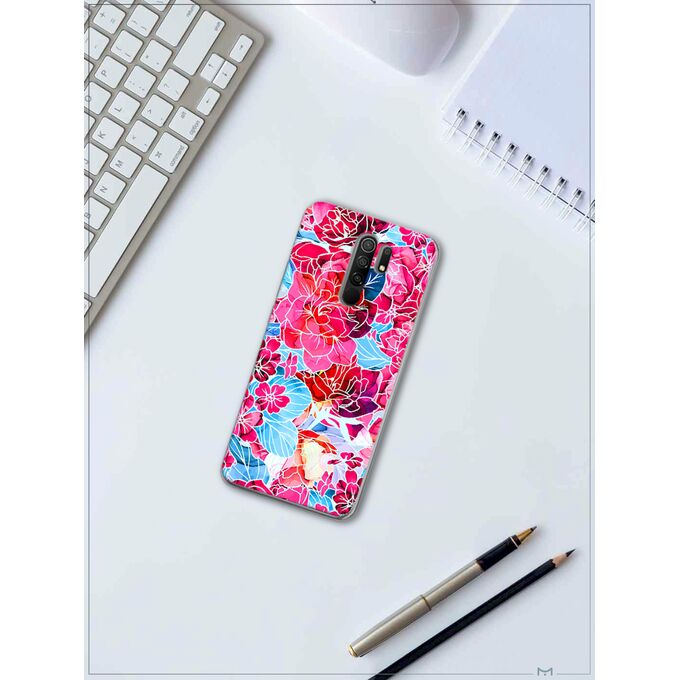 Силиконовый чехол Mcover для Redmi 9 (Редми 9), Розовые цветы