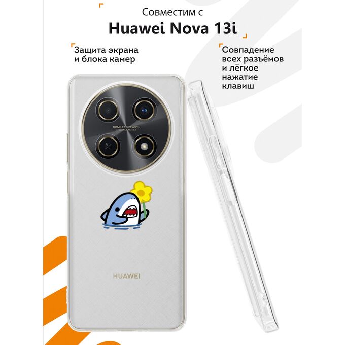 Силиконовый чехол Mcover на Huawei Nova 13i, Акула с цветком