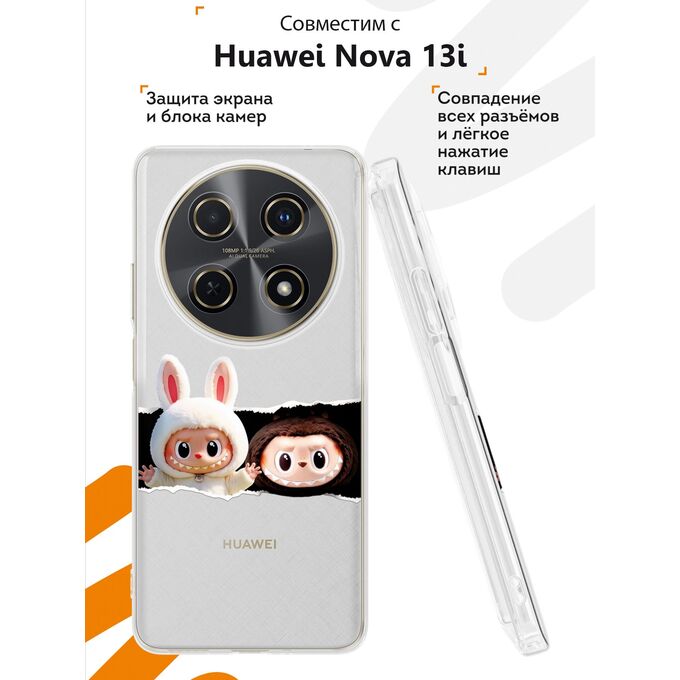 Силиконовый чехол Mcover на Huawei Nova 13i, Белый и коричневый лабубу