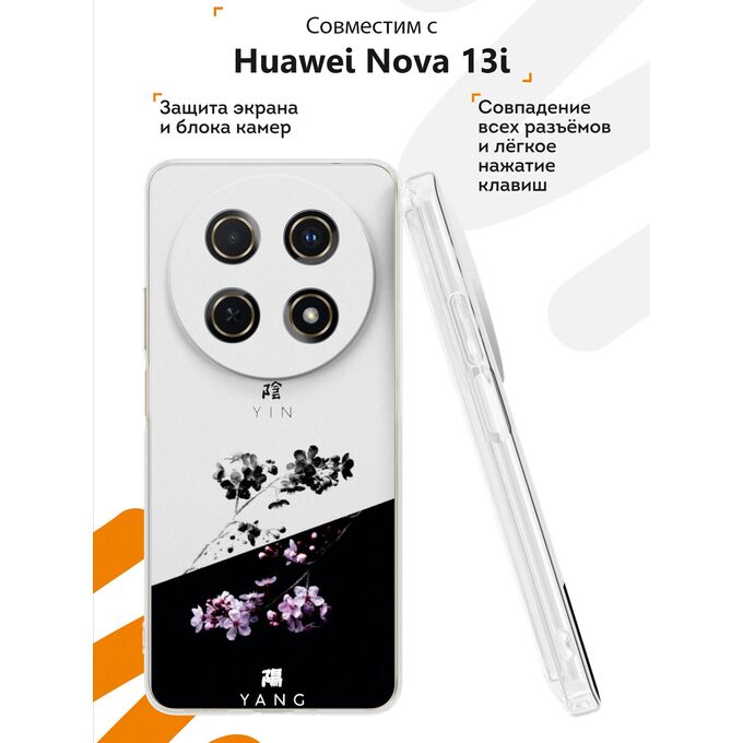 Силиконовый чехол Mcover на Huawei Nova 13i, ЧБ веточки цветов