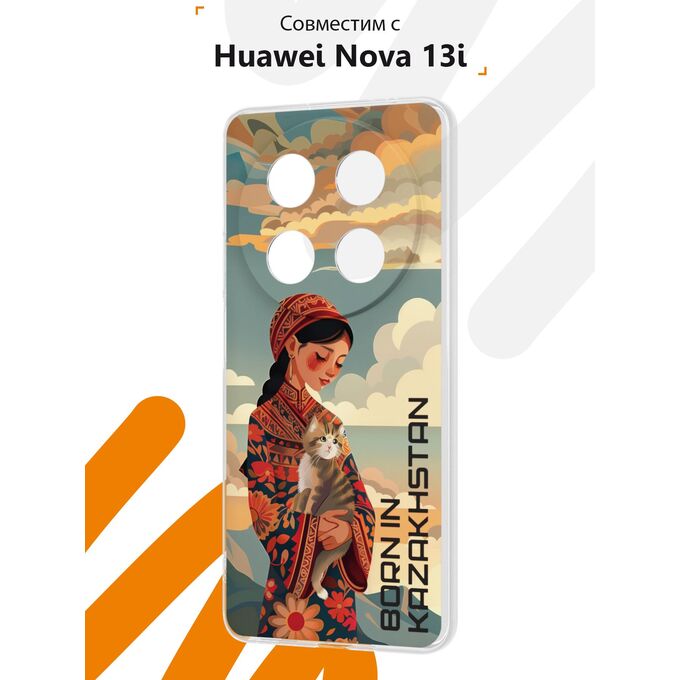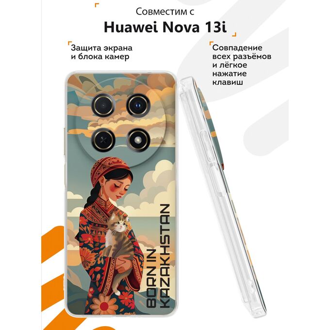 Силиконовый чехол Mcover на Huawei Nova 13i, Девушка и кошка