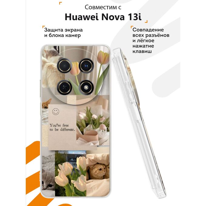 Силиконовый чехол Mcover на Huawei Nova 13i, Коллаж с тюльпанами