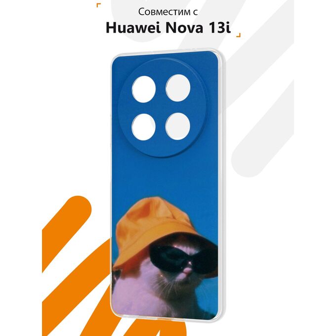 Силиконовый чехол Mcover на Huawei Nova 13i, Кот в очках и шляпе