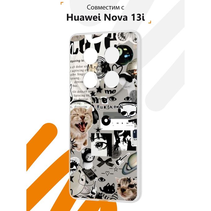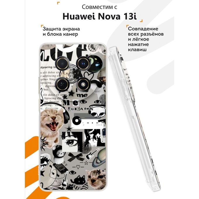 Силиконовый чехол Mcover на Huawei Nova 13i, Коты коллаж