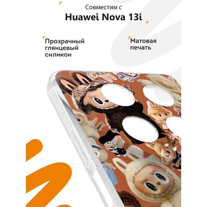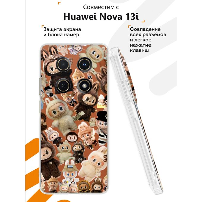Силиконовый чехол Mcover на Huawei Nova 13i, с принтом Бежевые лабубу