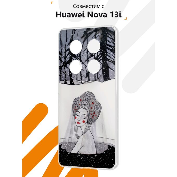 Силиконовый чехол Mcover на Huawei Nova 13i, с принтом Девушка в кокошнике в лесу