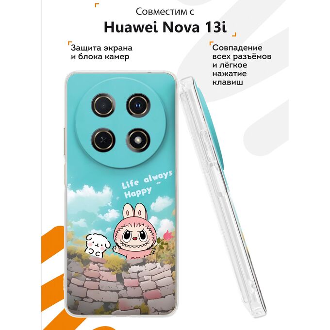 Силиконовый чехол Mcover на Huawei Nova 13i, с принтом Лабубу и щенок