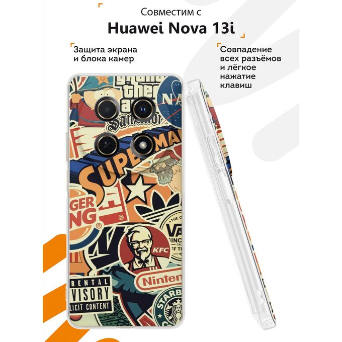 Силиконовый чехол Mcover на Huawei Nova 13i, с принтом Логотипы