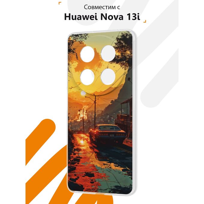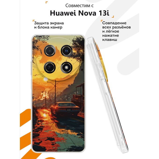 Силиконовый чехол Mcover на Huawei Nova 13i, с принтом Машина и закат