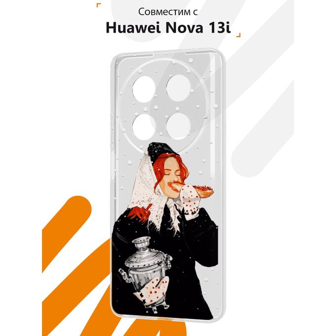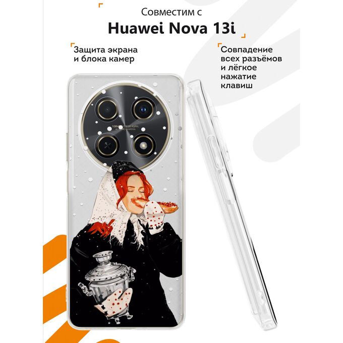 Силиконовый чехол Mcover на Huawei Nova 13i, с принтом Рыжая девушка с самоваром
